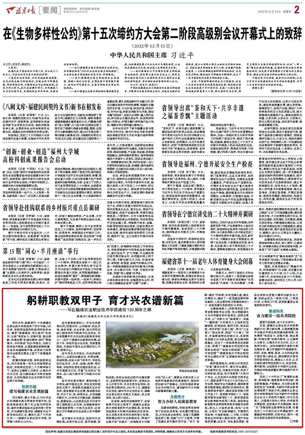 12月16日,《福建日报》刊发我校党委书记杨振坦的署名文章《躬耕职教双甲子 育才兴农谱新篇——写在8858cc永利唯一官方网建校120周年之际》,现予以全文转载。