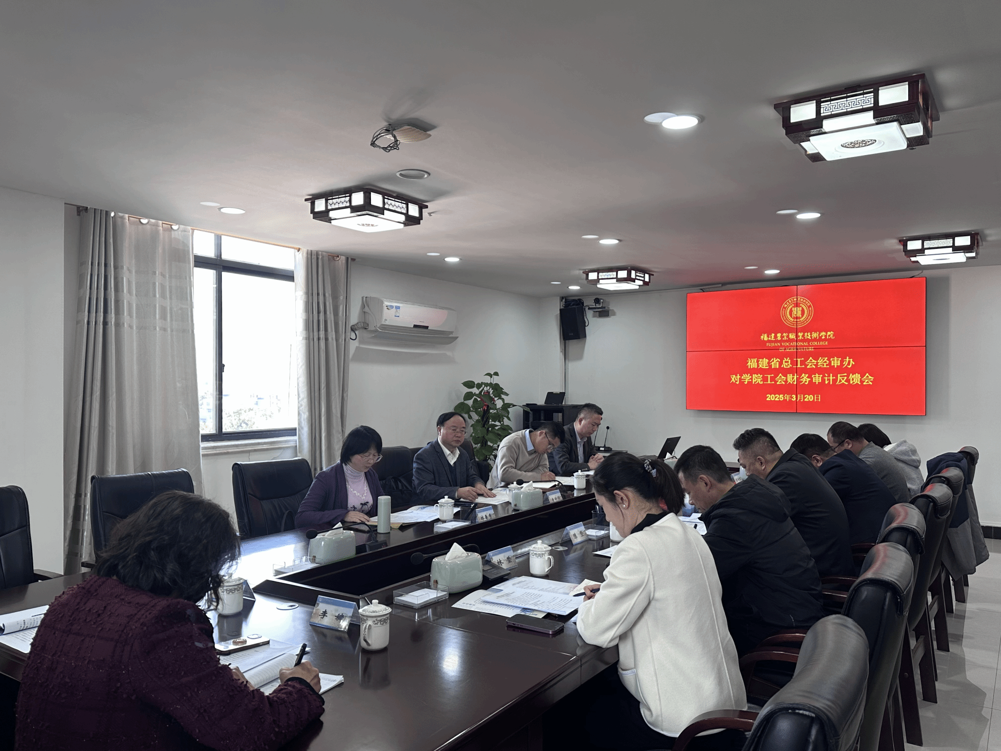 3月20日下午,福建省总工会经费审查委员会办公室主任唐明强率工作组一行4人莅临学院,就工会财务审计情况进行专题反馈。副院长兼工会主席严挺文、财务处处长陈坚、工会常务副主席陈晓波、工会副主席林莹、工会经审委主任彭阔东及相关职能部门负责人参加会议。