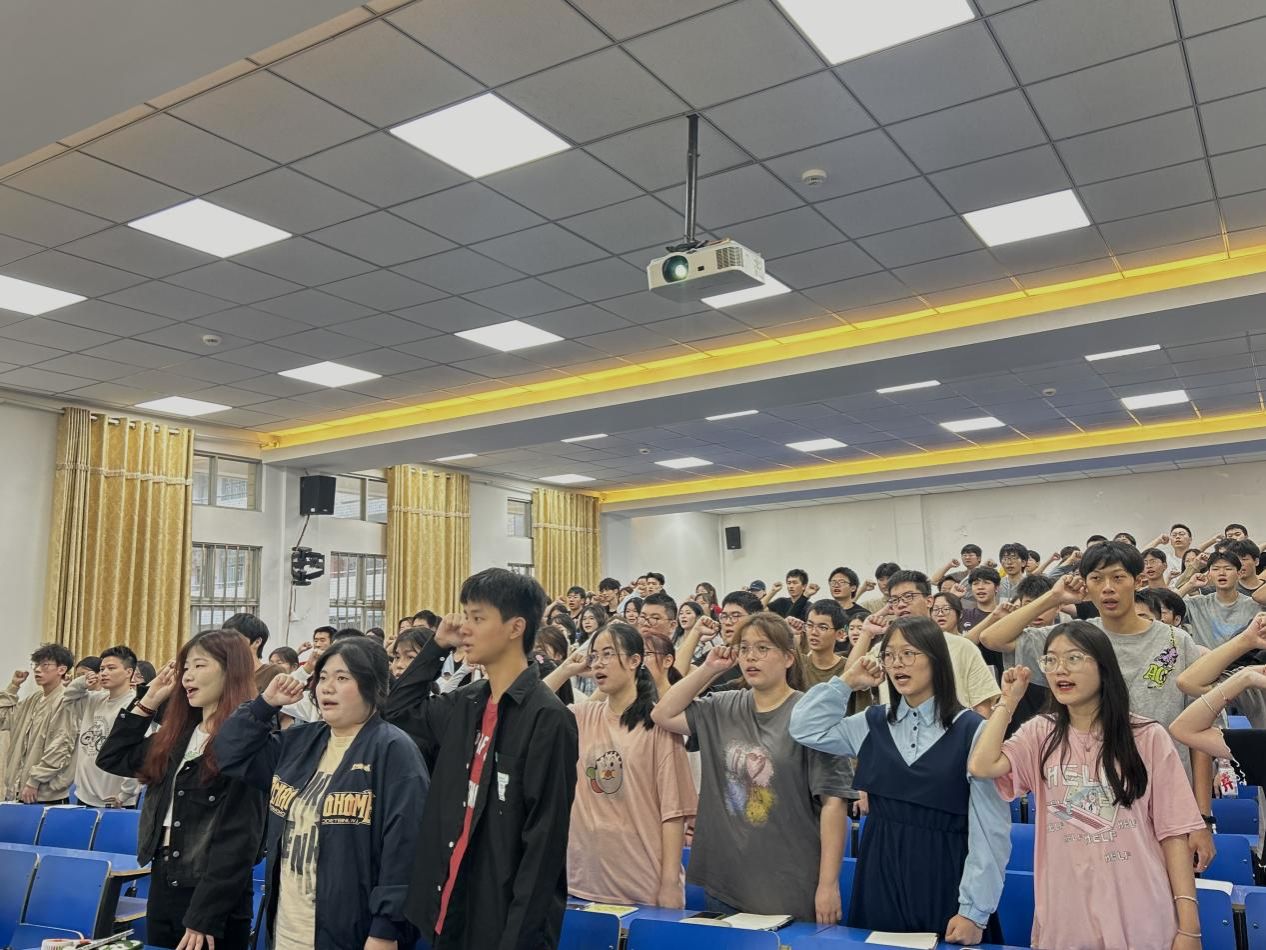 大会在热烈的掌声中拉开帷幕,信息工程学院红十字会负责人对新加入的志愿者们表示热烈欢迎,并对他们即将开展的志愿服务寄予厚望。在大会的培训环节,负责人为新志愿者们详细介绍了红十字会的章程、会员的权力和义务、组织架构以及志愿服务的相关技能和注意事项。通过互动交流和视频,使2024级志愿者对红十字会的运作模式有了更深入的了解,为未来的志愿服务奠定了坚实的基础。随着全体新志愿者们举起右手,用坚定的声音许下了他们的承诺:“我承诺,尽己所能,不计报酬,帮助他人,服务社会……” 每一句誓言都是对自我价值的肯定,对社会责任的担当。他们承诺,将用实际行动践行红十字精神,成为爱与希望的使者,为社会带来正能量,为需要帮助的人们带去光明与温暖