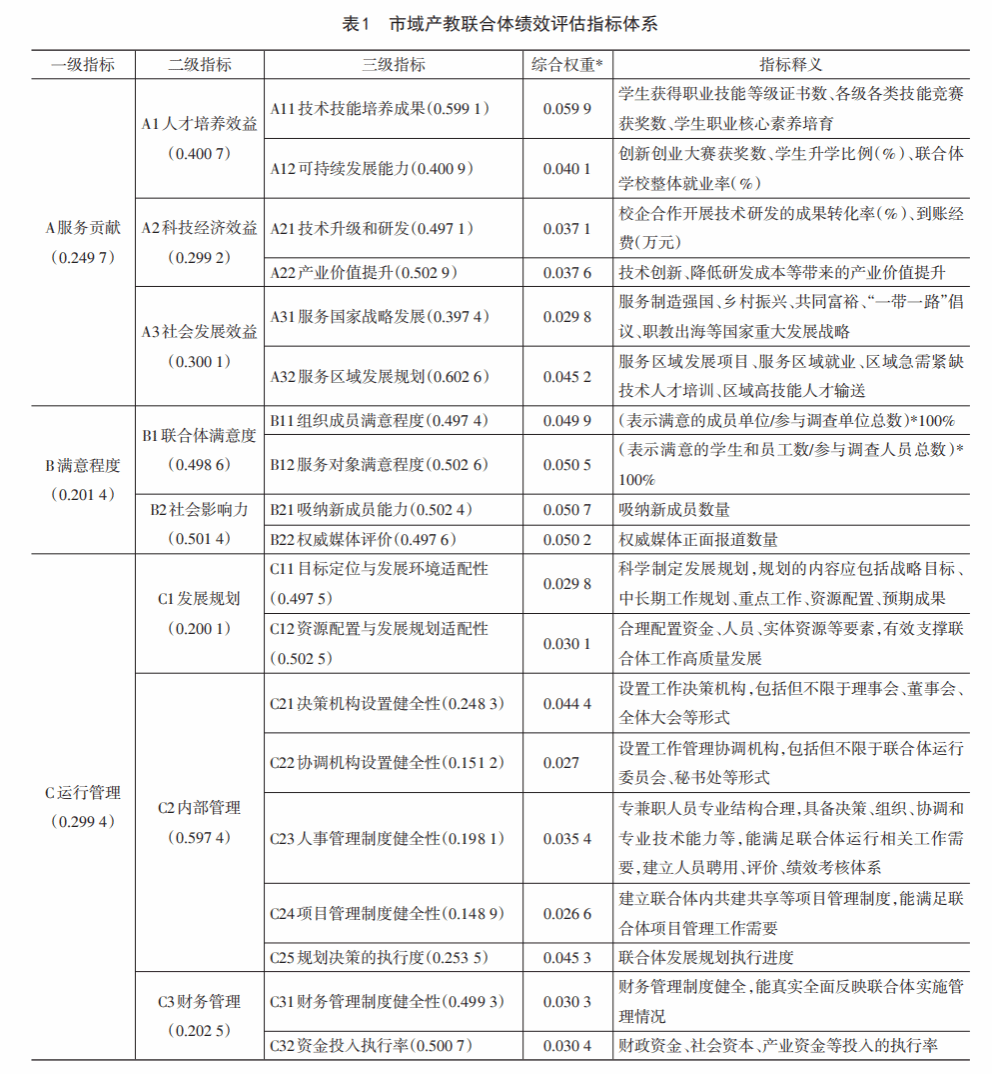 关键词:职业教育;市域产教联合体;绩效评估;指标体系;层次分析法