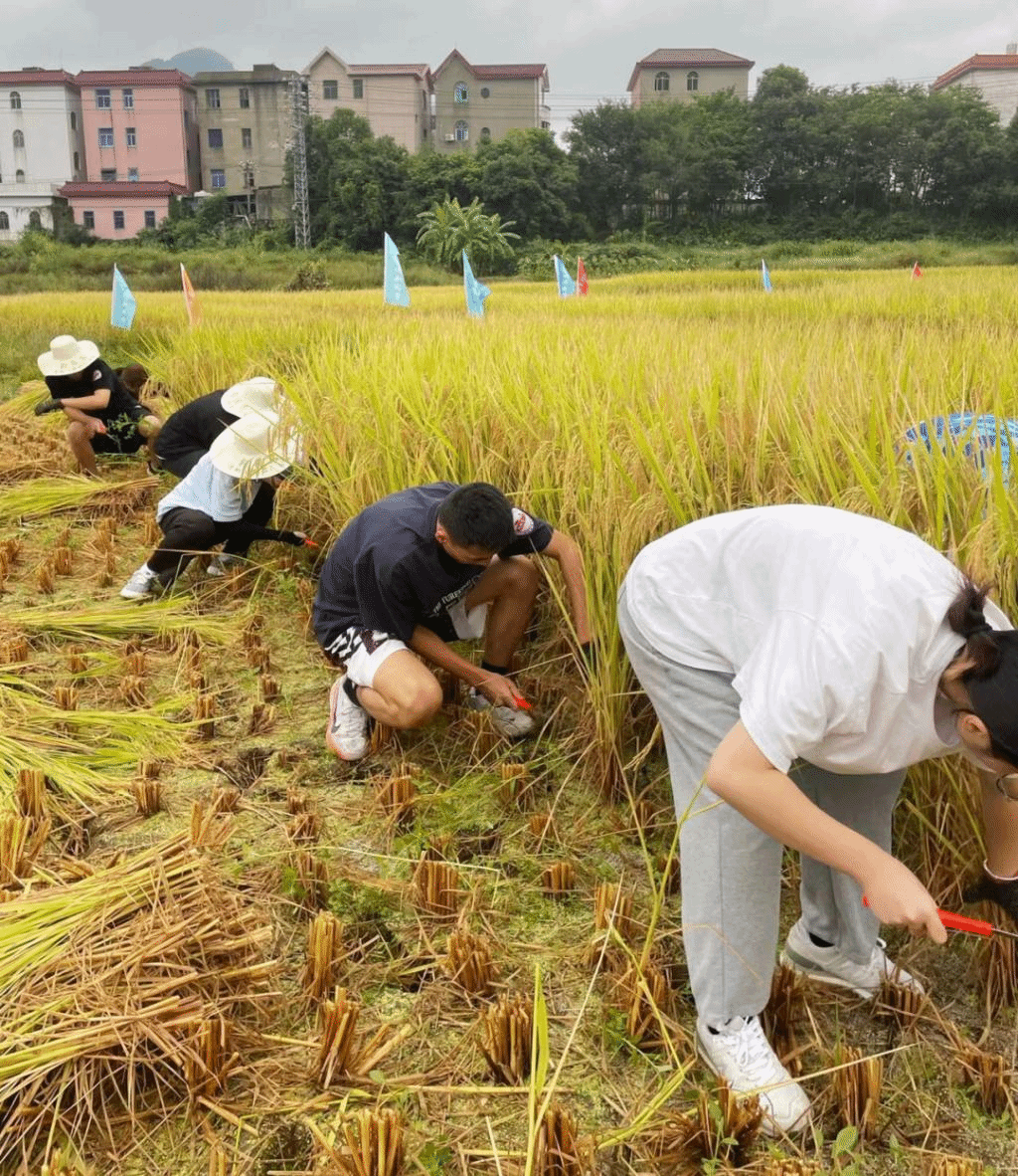 水稻收割比赛以农事劳作小竞赛的方式举行,组织青年学生走出课堂,鼓励师生在田间地头一起劳作。竞赛通过割稻、打稻、晒稻、风稻和碾米等农事劳动工作,以第一视角,感受丰收氛围,体味丰收喜悦。