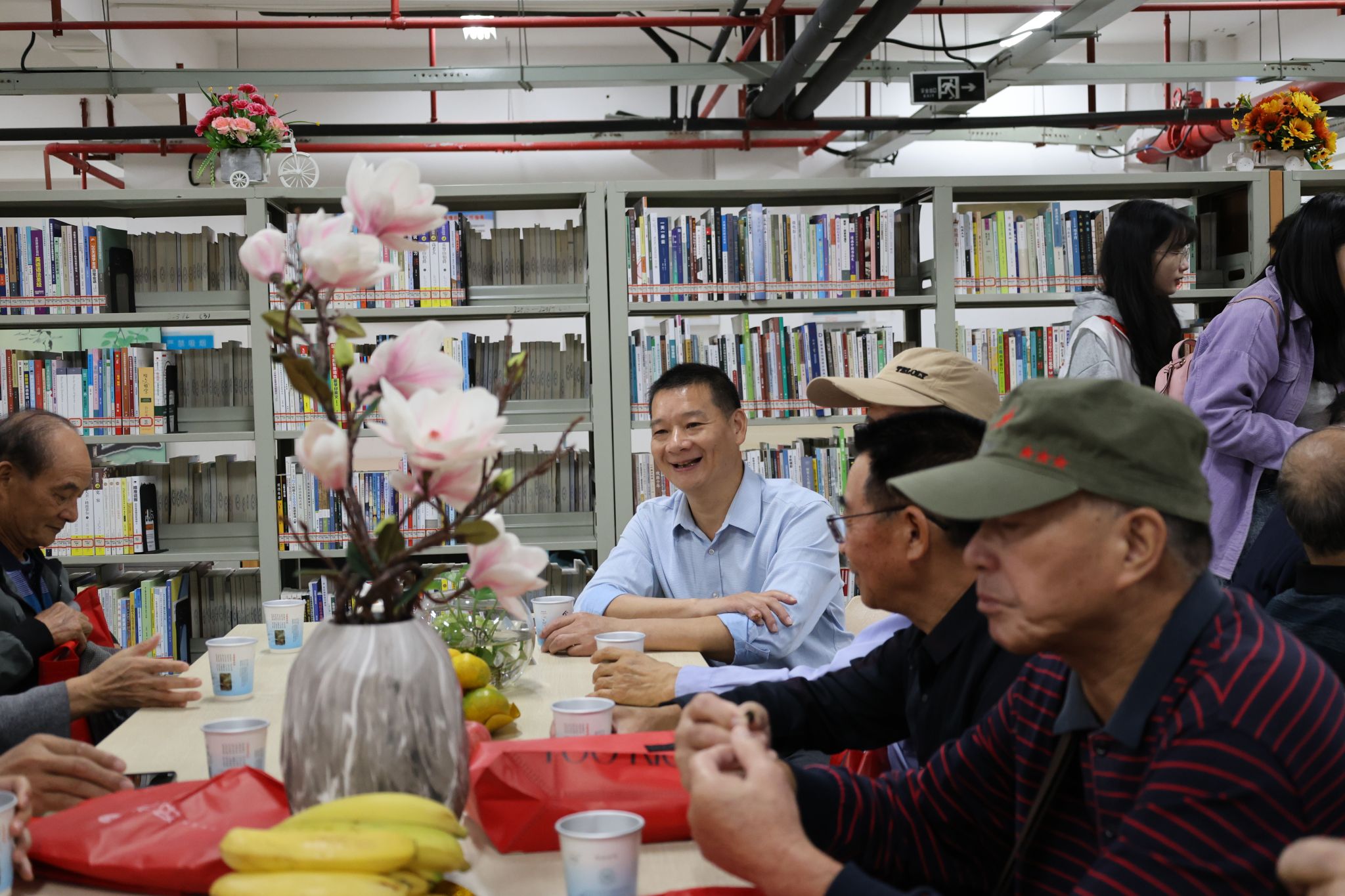 随后,活动队伍来到阅览室。在阵阵书香中,由吴华副院长主持重阳节座谈会、何东进院长作了热情洋溢的讲话,他们代表学校向全体老领导老同志致以节日问候、送上美好祝福。老同志们不断赞赏学院的远大抱负和锐意进取精神,并祝福学院取得更优异的成绩。随后,领导与退休老人们闲话家常,大家围拢畅谈,欢声笑语伴随着,快乐情谊萦绕着,沉浸在喜悦祥和之中。