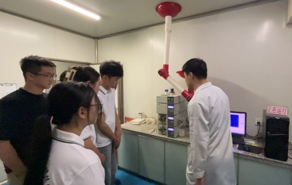 在企业专业技术人员的精心引导下,实践队参观了企业的研发实验室、中兽药现代化提取车间、精制干燥车间、化药粉剂生产车间等,观摩了颗粒剂制粒及分装、灭菌外包等工艺过程,使学生近距离了解各种现代化中兽药制药新工艺、新技术、新设备,感受企业自动化质控技术和研发创新水平,极大拓展了对书本理论知识的认知,也对兽药产业的发展有了更加直观深刻的认识。企业专业技术人员结合自身工作实际和多年丰富经验,为实践队在工作现场上了一堂生动专业实践课,耐心细致地解答了各种疑问,让学生对中兽药生产的科学性和严谨性有了更为深刻的认识。