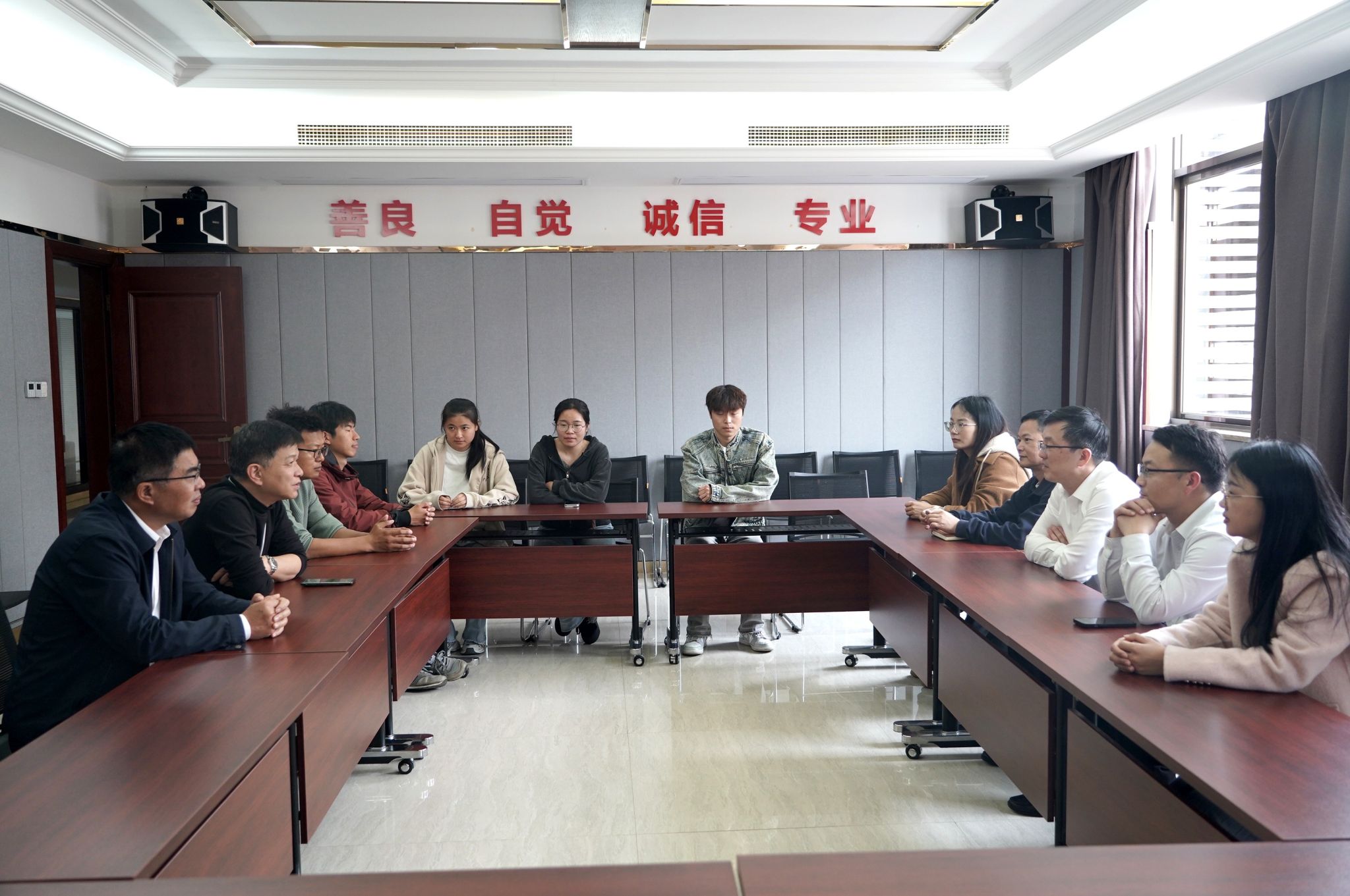 随后,学院领导与企业代表、在校实习生进行了面对面交流。何东进介绍了学院的基本情况、办学特色及学生实习就业现状,感谢企业对学院就业工作的支持,并希望双方进一步深化合作,推动人才培养模式创新。公司副总经理崔田结合行业趋势,强调了提升学生实践能力的重要性,并对学院人才培养提出了建设性意见。何院长还关切地询问了五位实习学生的工作与生活情况,鼓励他们关注职业发展,持续提升个人能力。