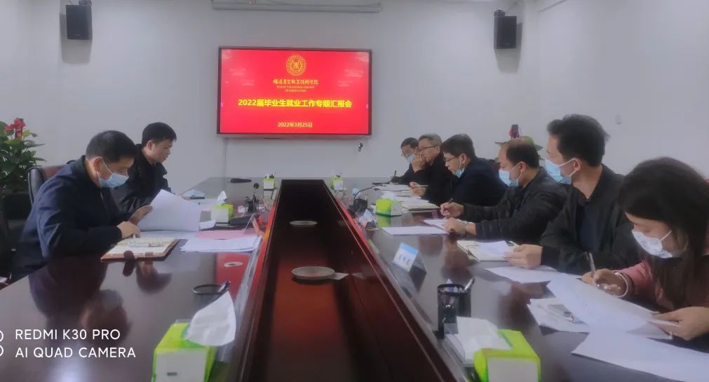 为贯彻落实党中央关于做好“六稳”工作,落实“六保”任务精神,在疫情期间切实做好我校2022届毕业生就业及相关工作,3月25日,学院召开2022届毕业生就业工作专题汇报会。校纪委陈坛春书记、周雄副校长、招生就业处人员、各二级学院书记和就业指导老师参加了会议。会议由周雄副校长主持。