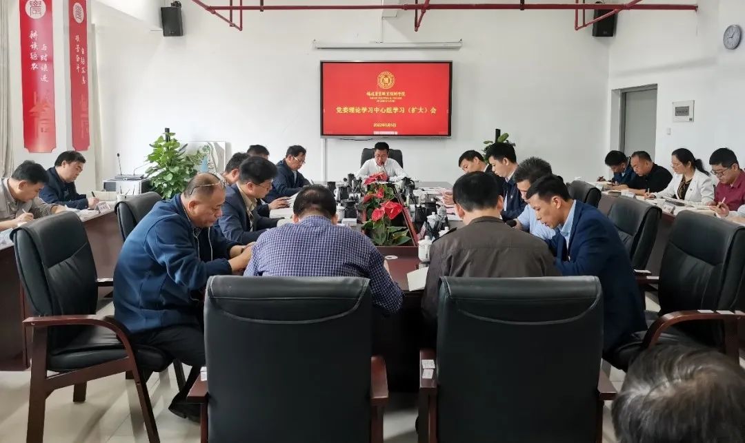 5月5日上午,学院党委理论学习中心组学习(扩大)会在闽台楼816召开,党委书记杨振坦主持学习并讲话,领导班子成员及各二级单位负责人参加学习。