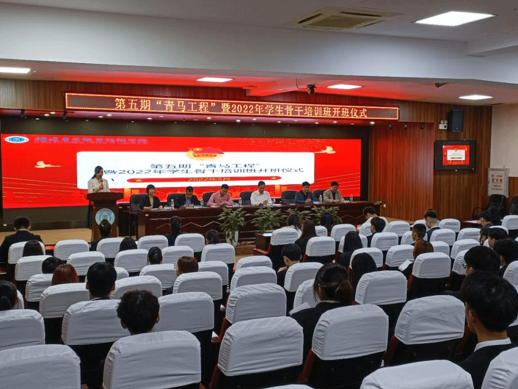 2022年5月12日晚上,我校第五期“青马工程”暨2022年学生骨干培训班开班仪式在闽台楼学术报告厅隆重举行。学院党委副书记王振亮,组织部、宣传统战部、马克思主义学院、学工部、团委等部门负责人,各二级学院团总支书记以及147名学员参加开班仪式。仪式由团委冯敏娟老师主持。