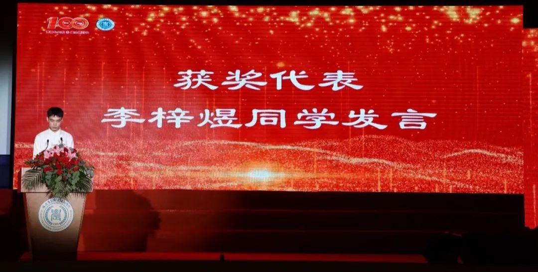 “优秀团员”李梓煜同学作为优秀团干部代表发言。他表示,在今后的学生生活中,将继续发挥学生干部模范带头作用,团结同学,一道在青春的赛道上奋力奔跑,跑出当代青年的最好成绩。