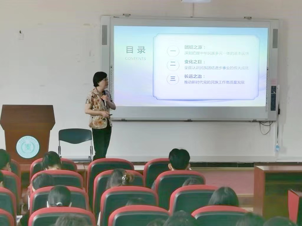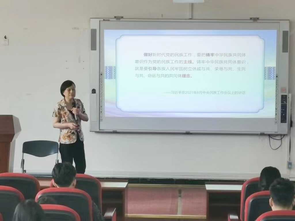 陈玲院长指出,上下同欲者胜,同舟共济者兴。当前,全面建设社会主义现代化国家的新征程已经开启,我们站在了新的历史起点上,更要深入学习贯彻习近平总书记关于加强和改进民族工作的重要思想,像爱护自己的眼睛一样爱护民族团结,像珍视自己的生命意义珍视民族团结,像石榴籽一样紧紧抱在一起,铸牢中华民族共同体意识。同学们也要筑牢中华民族共同体意识,与各民族的同胞手足一起,共同绘就中华民族伟大复兴的壮美画卷。(供稿 马克思主义学院)