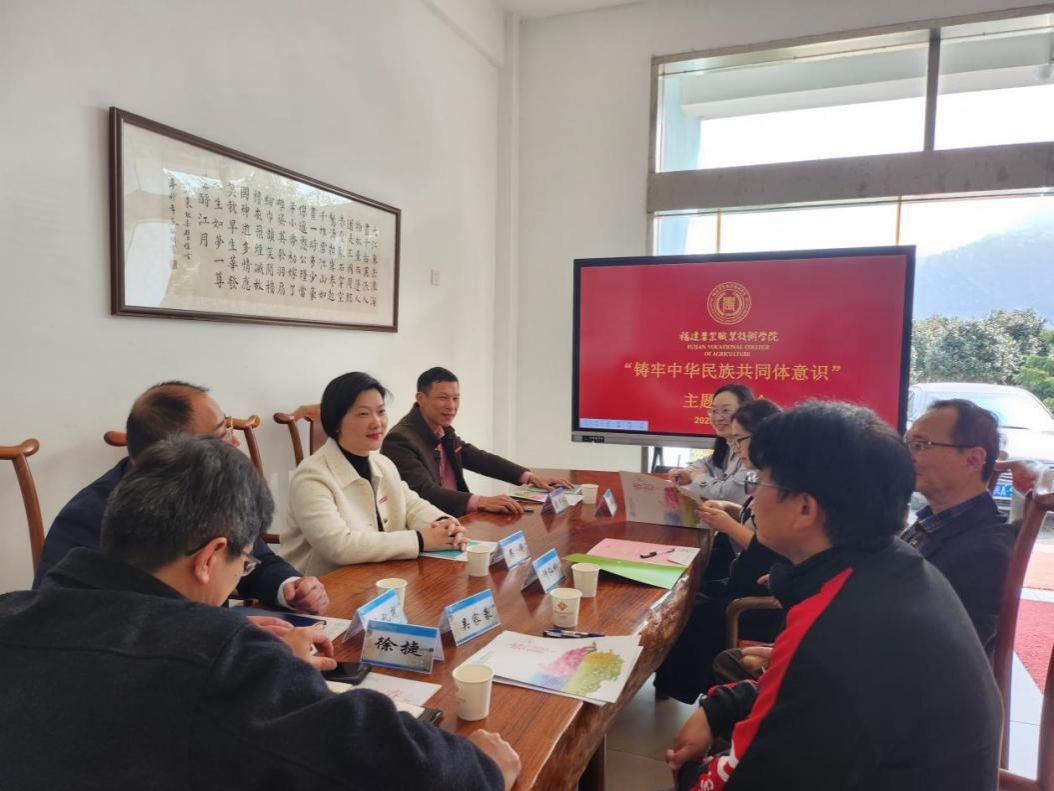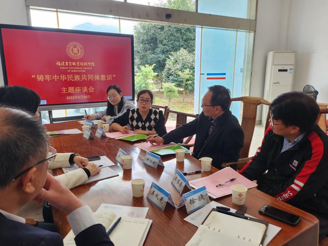 3月20日上午,“铸牢中华民族共同体意识”主题座谈会在我校乡村振兴楼举办。学院吴华副院长、宣传统战部詹其仙部长、教师工作部吴礼光部长、园艺园林学院党总支徐捷书记、台籍教师钟仁彬教授、吴家豪博士及教师代表等参会。座谈会上,参会教师围绕闽台渊源、文化记忆、立德树人等情况进行发言,在如何传承闽台文化、推进闽台深度融合发展、厚植中华民族共同体意识展开讨论。