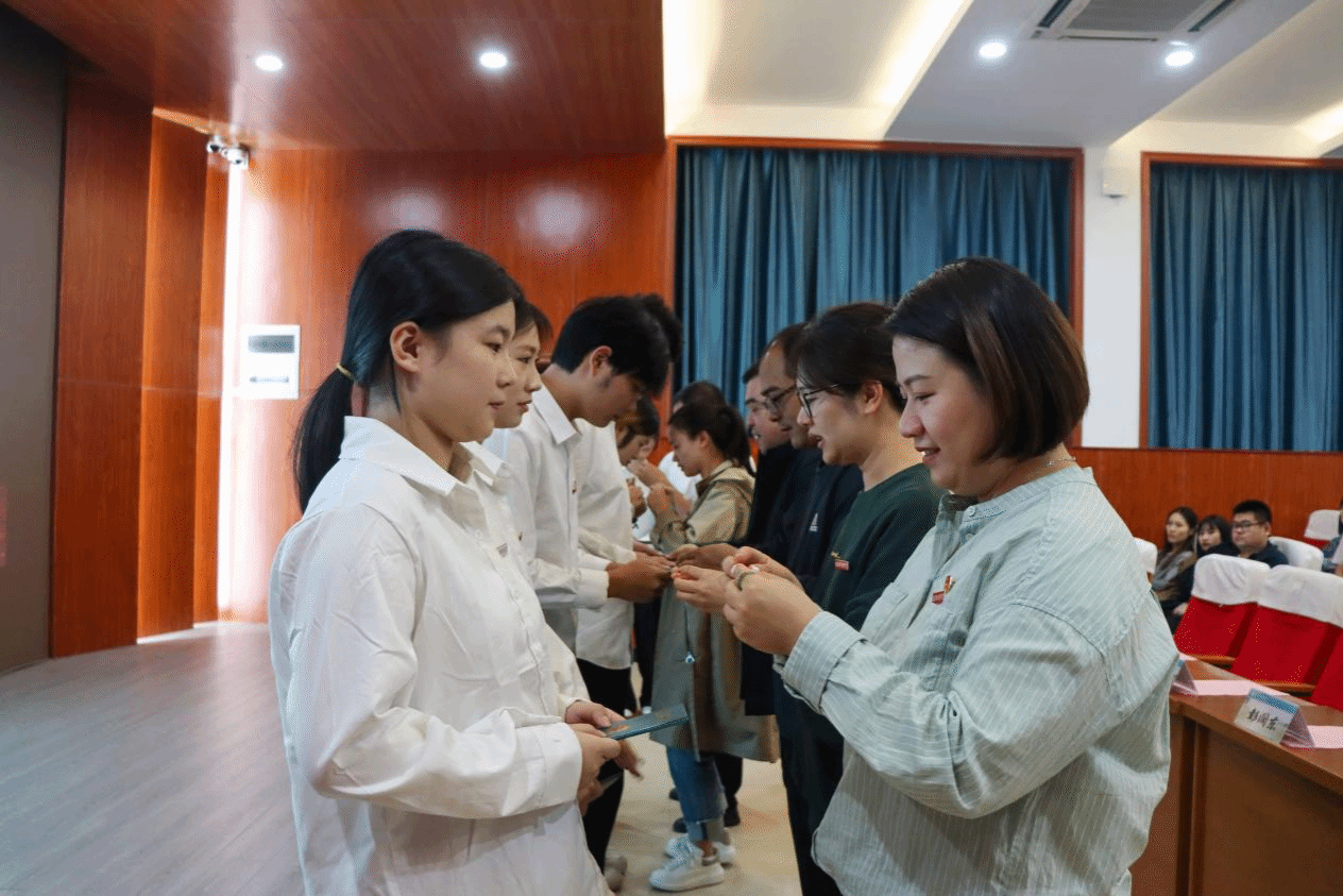 (为新团员颁发团员证)