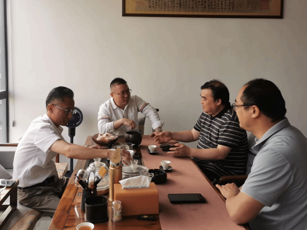 2025年4月14日上午,经管学院党总支书记郑旭东、副书记彭阔东、实训办主任卢美容老师一行前往福州市泰顺商会走访调研,福州市泰顺商会会长、福建百汇通电子科技有限公司、人人通(福建)教育科技有限公司董事长董教义和福建省得师轩茶文化传播有限公司董事长王加超参加了调研并座谈。