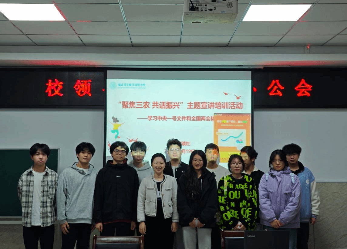 为深入学习贯彻2025年中央一号文件和全国两会精神,增强涉农高校学生对“三农”工作重要性的认识,3月19日下午,青马耕读社在闽台楼501党建活动室组织开展了“聚焦三农 共话振兴”主题宣讲培训活动。活动由青马耕读社指导教师陈雅丽主持。