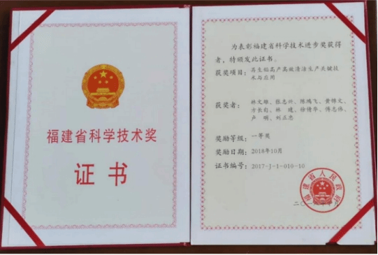 2018年10月被福建省人民政府表彰为福建省科学技术进步奖一等奖。