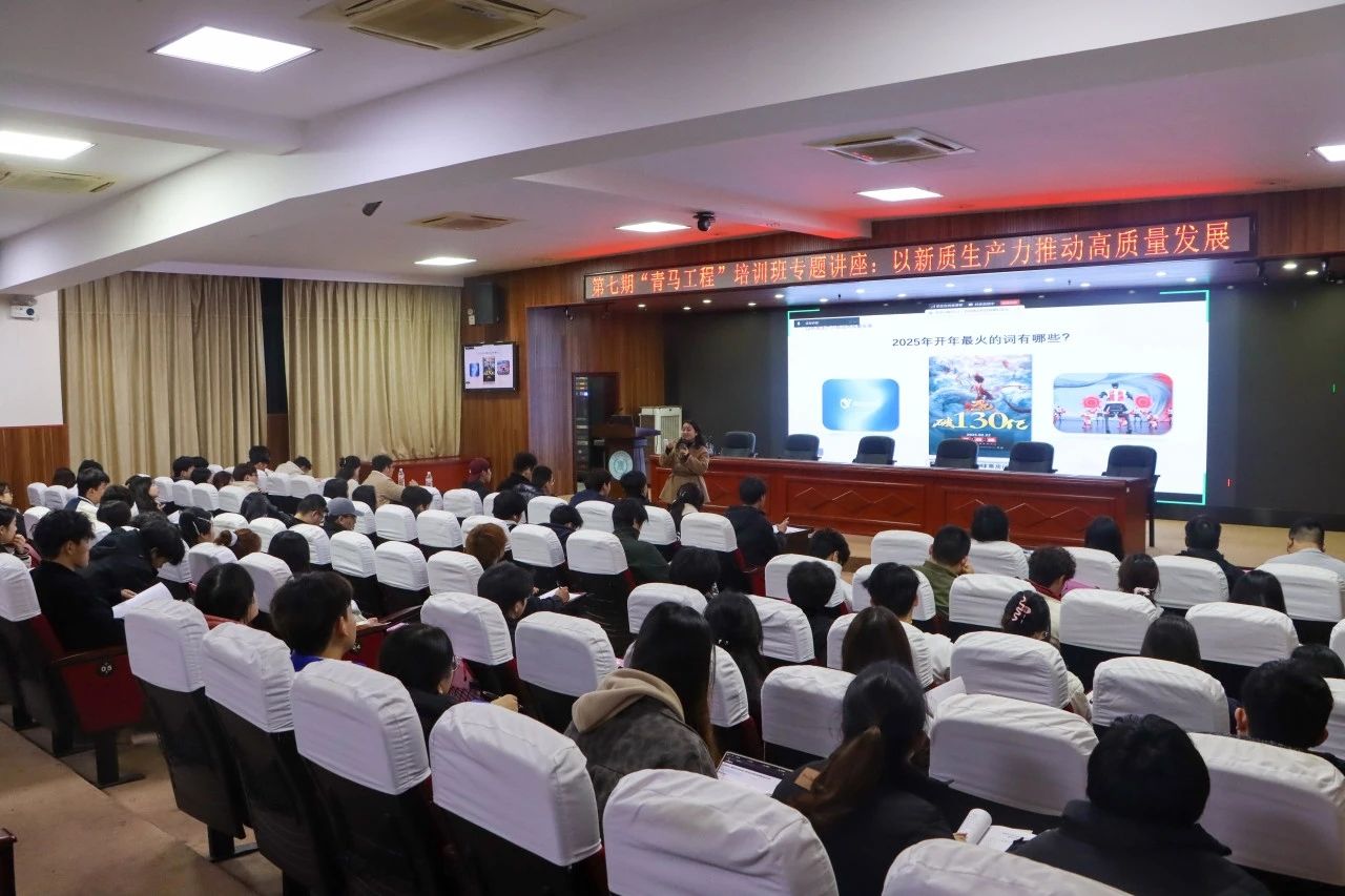 2月27日晚,第七期“青马工程”暨学生骨干培训班专题讲座在闽台楼学术报告厅顺利举办。本次讲座以“以新质生产力推动高质量发展”为主题,特邀马克思主义学院副院长连淑娇老师担任主讲嘉宾,100余名青马学员齐聚一堂,共同学习探讨新质生产力的内涵与实践路径。