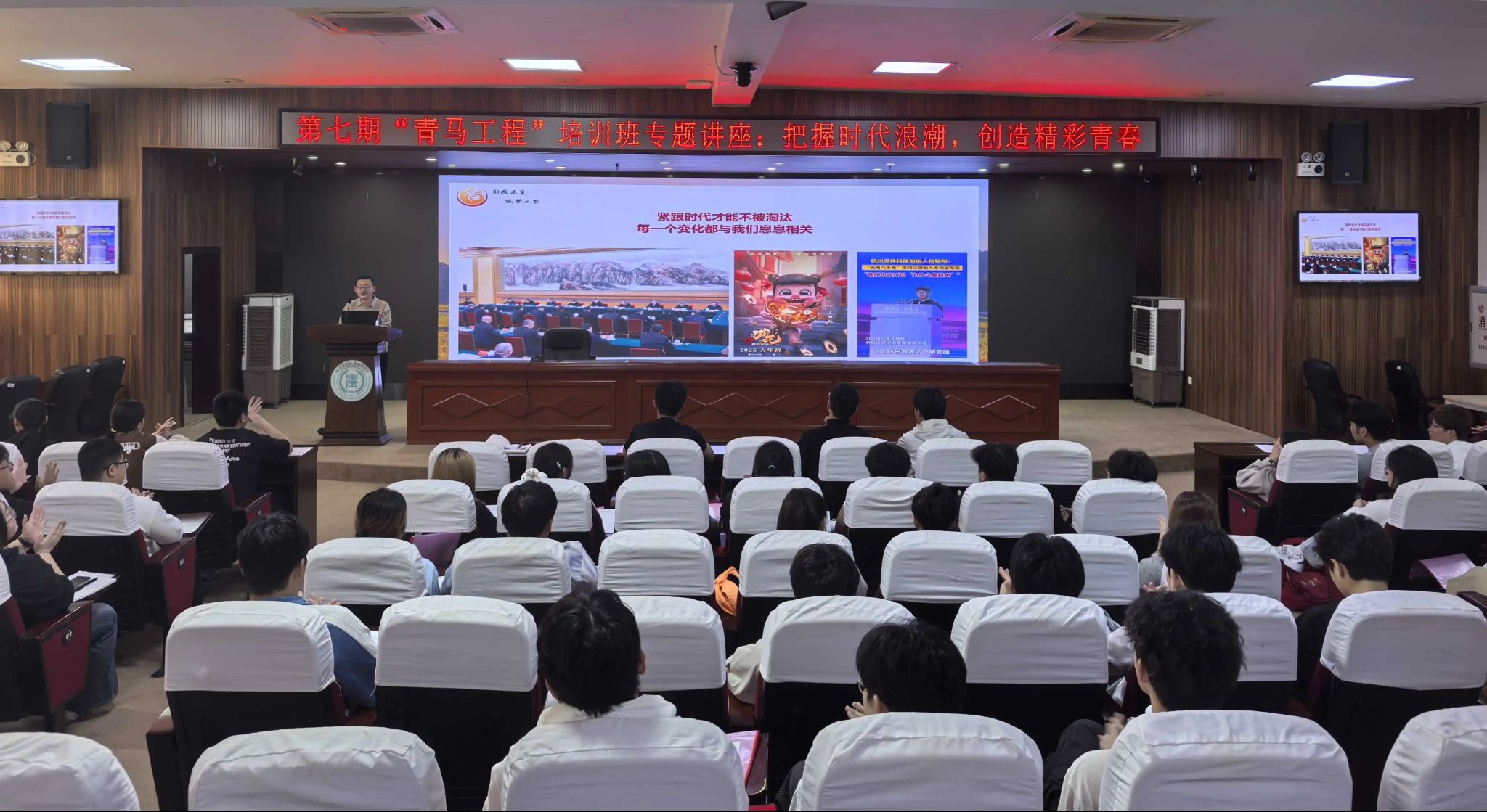 3月12日下午,第七期“青马工程”暨学生骨干培训班在闽台楼学术报告厅举办了一场以“把握时代浪潮,创造精彩青春”为主题的专题讲座。本次讲座特邀清华大学乡村振兴工作站·闽清站地方站长裴锦泽担任主讲嘉宾,100余名青马学员参加学习。讲座聚焦乡村振兴战略背景下的青年使命与创新创业实践,为学员们带来了一场思想与行动的双重启迪。