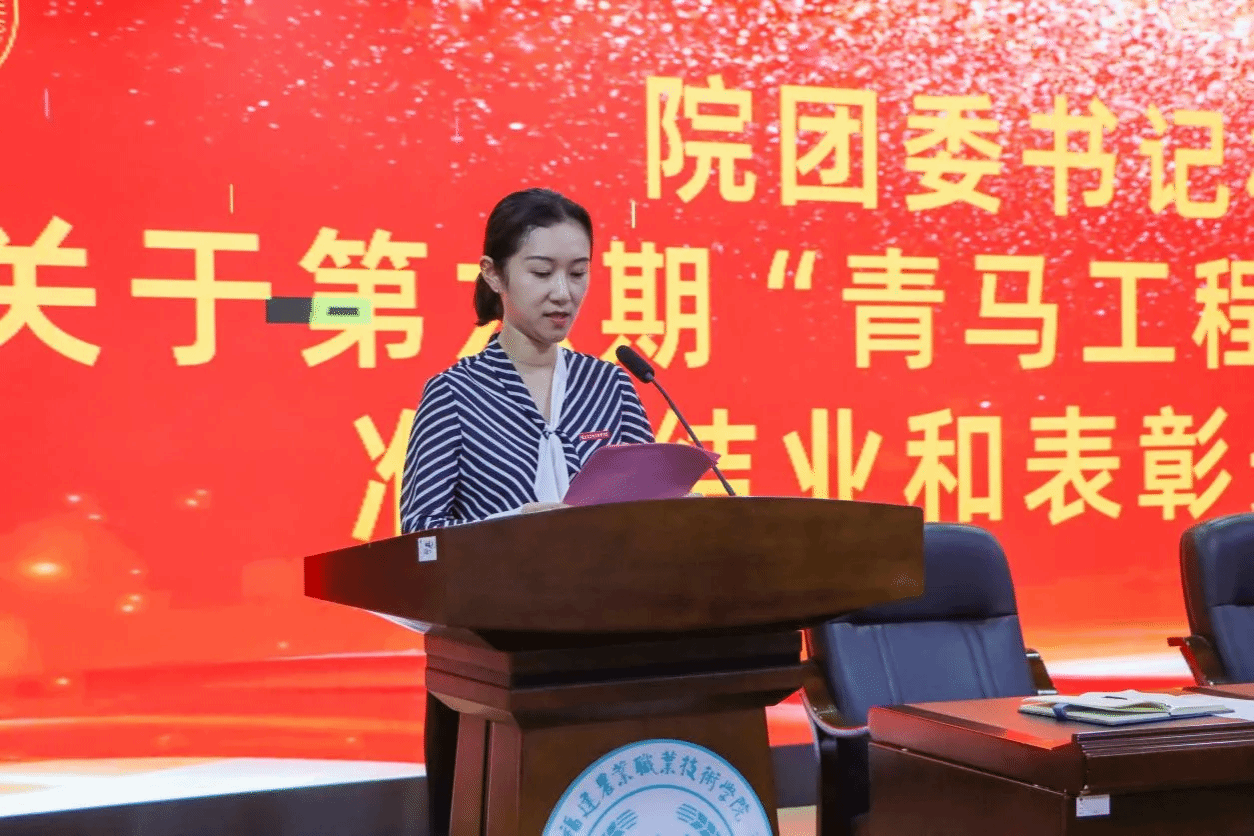 第六期“青马工程”培训班学员贾星悦同学作为优秀学员代表发言,她回顾了自己在青马工程学习过程中的点滴,分享了自己的学习心得和成长感悟。她表示,作为青马学员,她将以更加饱满的热情和更加坚定的信念投身到实践中去,为实现中国梦贡献自己的青春和力量。