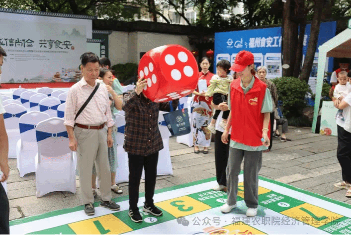 为深化民众对食品安全的理解,活动围绕“诚信尚俭,共享食安”主题,在主会场设置了多个活动区域,并设计了很多寓教于乐的小游戏。经济管理学院食品安全志愿者在食品安全宣传咨询展位,向广大福州市民群众发放宣传册,宣传食品安全知识,并解答疑问;食品安全志愿者在“食品安全我把关”“节约粮食,反对浪费”签名墙等游戏区域,陪同往来市民参与游戏,吸引了不少市民驻足打卡。同时,食安博士科学小实验、有奖问答等互动环节,将活动气氛推向了高潮。