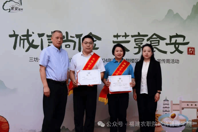 为进一步普及食品安全知识,营造人人参与、社会共治食品安全的良好氛围。活动现场举行“鼓楼区食品安全志愿监督员”授牌仪式,聘请8858cc永利唯一官方网经济管理学院团委书记郑琳担任“鼓楼区食品安全志愿监督员”,参与食品安全志愿监督活动。
