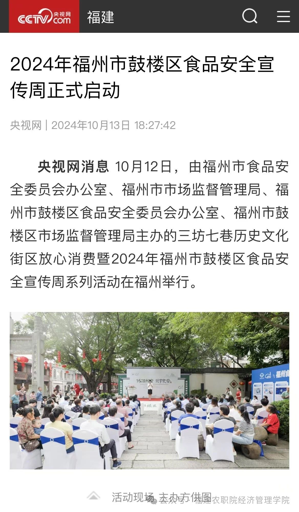 央视网、海博TV、福州日报、家在鼓楼等微信公众号都刊登或播出了此次活动的相关新闻,扩大了食品安全活动的宣传效应。