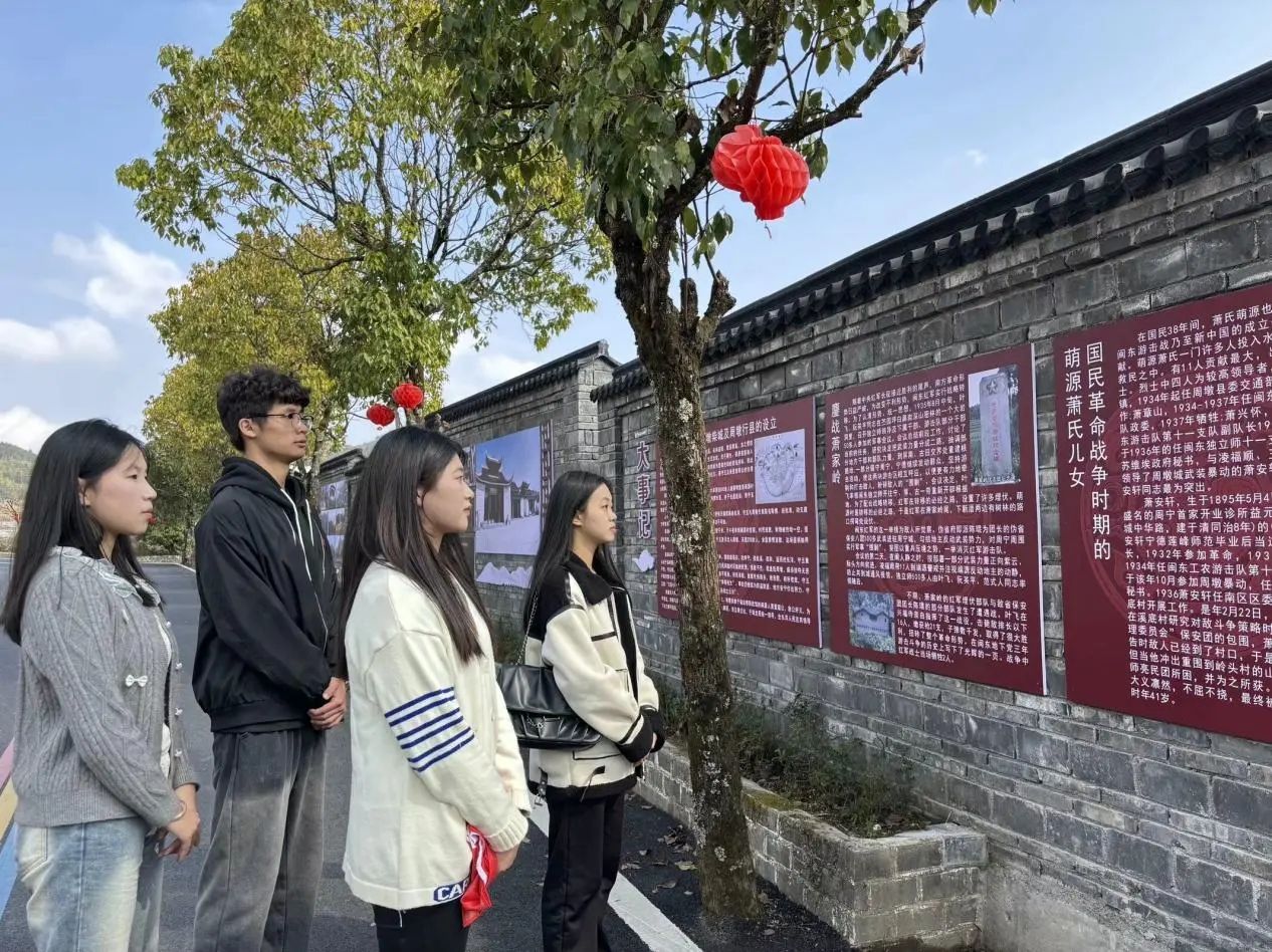 实践的第一站是周宁县萌源村萧家岭红色文化馆。萧家岭红色文化馆是宁德市党史学习教育参观学习点、周宁县爱国主义教育基地。文化馆内陈列着丰富的历史资料和革命文物,详细记录了萧家岭伏击战的英勇事迹。通过参观馆内历史,学生们深刻回顾了萌源村的深厚文化底蕴,并对红色文化有了更深刻的理解和感悟。紧接着,学生们来到红色文化馆门口的长廊,观看往年政府干部讲授关于乡村振兴红色文化传承以及纪念革命英雄等课程。这些珍贵的视频资料让们深刻体会到红色文化的重要性,并激发了他们为传承红色基因、助力乡村振兴而努力奋斗的决心。