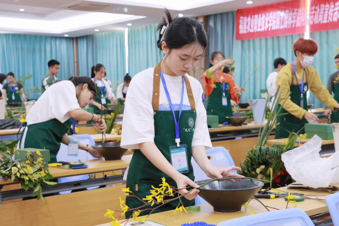 5月25日,由学生工作部主办,园艺园林学院肖晓梅技能大师工作室和心理健康教育中心承办的“花艺·匠心”插花竞赛活动在创业大讲堂举行。活动同时邀请福州市花卉协会、福州市花卉行业工会联合会进行现场观摩指导。