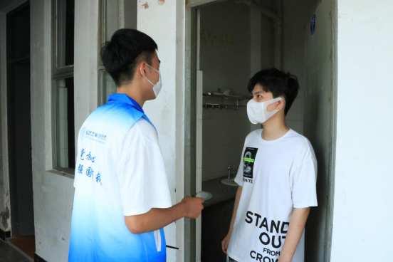 (志愿者走访宿舍,给新生进行答疑解惑)