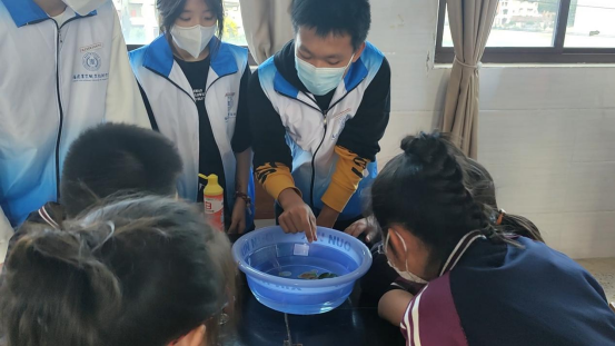 本次支教以拓展课外知识、以培养兴趣爱好为主,志愿者们结合自身所学专业知识,以多种形式充分调动同学们的积极性。前期通过不断筛选与完善支教内容,志愿者多次试讲、演练支教形式,最终确定本次支教课程内容为彩虹雨现象、分层水实验、油水分离实验、树叶快艇。在支教的过程中,志愿者通过热情互动的方式带领学生遨游在科技的海洋里,志愿者们循着思维落脚点,在与学生一来一去的点拨中帮助学生以抓住科学实验的要点来掌握实验内容,有方法、有思辨、有想象,上出了一堂生动、开放、高效的科学实践课。在课堂最后,通过让同学们将梦想写在纸飞机上,寓在希望小学生可以时刻牢记自身梦想并为之不断努力。面对学生真诚稚嫩的笑脸,志愿者们尽心尽力的将自己知道的科学知识传授给学生,推动小学生对科学事物的不断探索,深植科学强国思想。