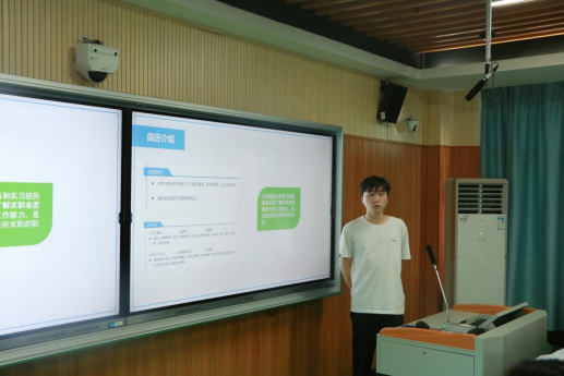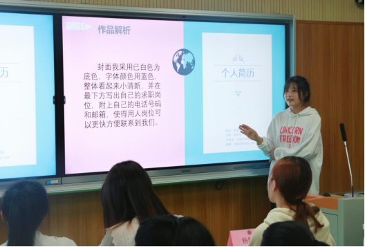 经过初赛的激烈竞争,共有10位同学脱颖而出进入决赛。决赛中选手们条理清晰,个性突出,从求职意向、基本信息、社会实践经历、在校表现、自我评价等多方面介绍自己制作的简历,以自信的姿态向评委们“推销”自己,展示了当代大学生的思维创新能力、务实能力和社会素质,他们的优秀表现得到了评委老师的关注和肯定。