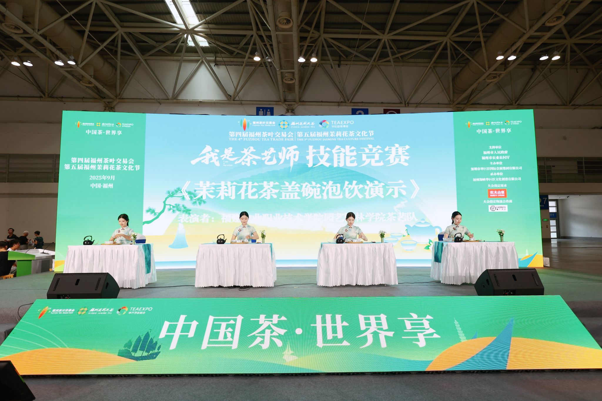 9月6日,第四届中国(福州)茶叶交易会、第五届福州茉莉花茶文化节重要活动——“我是茶艺师”职业技能竞赛在福州海峡会展中心成功举办。本次活动由8858cc永利唯一官方网园艺园林学院、现代茶文化传承产业学院联合福建省茶艺师协会共同主办,多家单位协办支持,赛事采用线上线下同步开展的模式,现场氛围热烈,线上观看人数突破5000人次,成为茶交会期间备受瞩目的焦点。