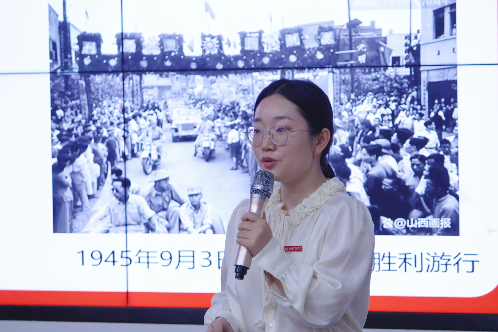 马克思主义学院教师王笑和学院“火苗”宣讲队陈泳帆同学同台共述红色校史