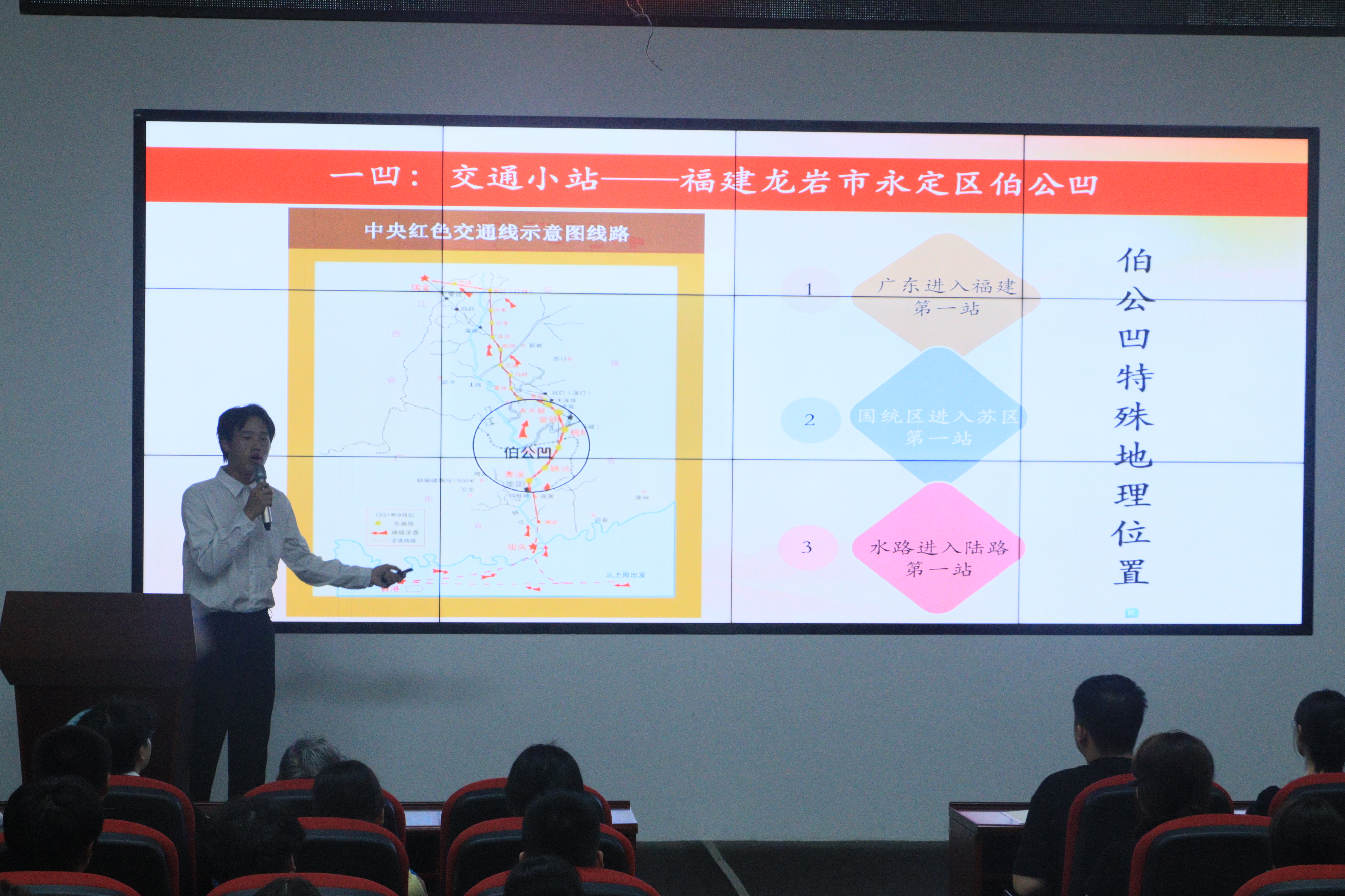 第一篇章:红色火苗,照亮长夜。学院“火苗”宣讲队黄林涛同学深情讲述了发生在闽西革命老区的“伯公灯”故事。通过描绘当年红军战士和人民群众在漆黑的夜晚依靠“伯公灯”微光传递信息、护送同志、坚持斗争的感人场景,生动诠释了革命战争年代军民鱼水情深和坚定不移的理想信念,这盏永不熄灭的灯象征着希望与信仰,深深触动在场每一位师生的心灵。