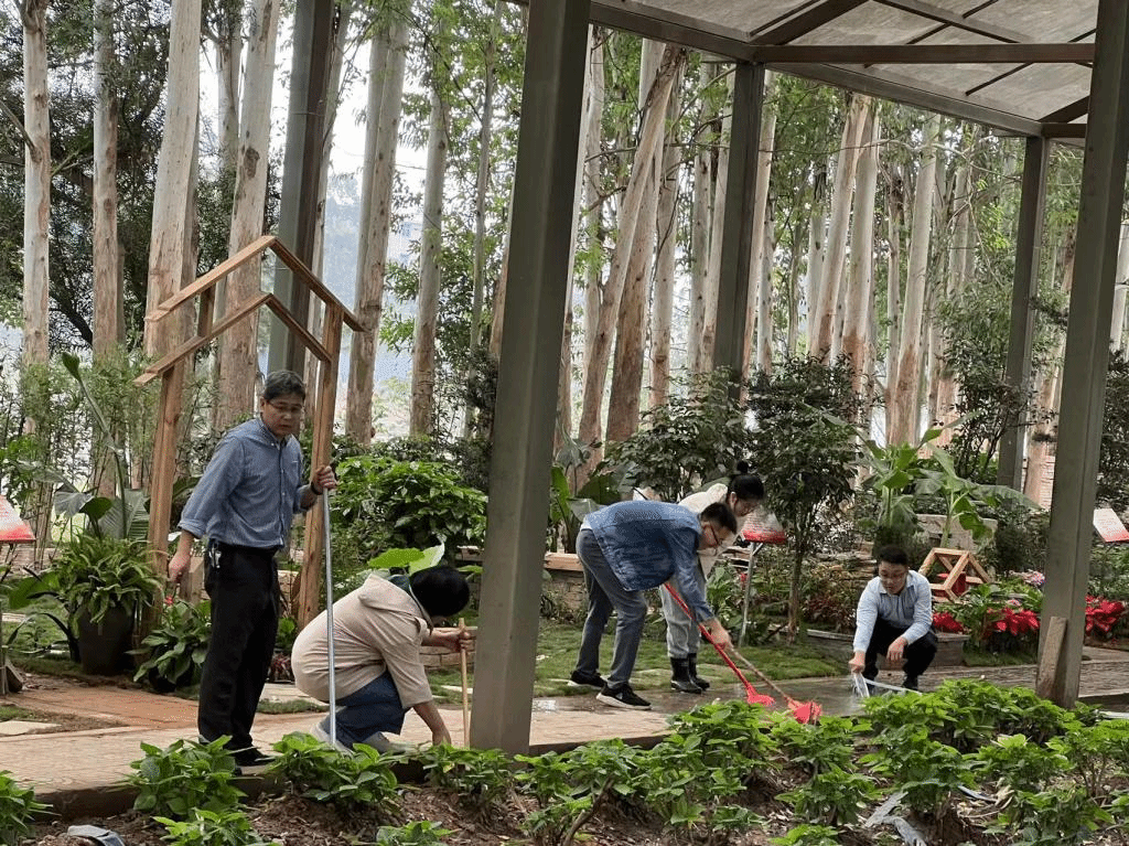 为全面贯彻党的二十大精神,11月15日下午,园艺园林学院教工第一党支部全体党员在林荫大道园林工程施工实训场开展“劳动美化校园”主题党日活动。劳动现场,教师党员相互配合,清理垃圾、冲洗地面、养护植物,经过一个下午的紧张劳动,不仅美化了校园环境,而且通过教师党员的率先垂范,在师生中进一步树立了劳动最光荣、劳动最崇高、劳动最伟大、劳动最美丽的观念。