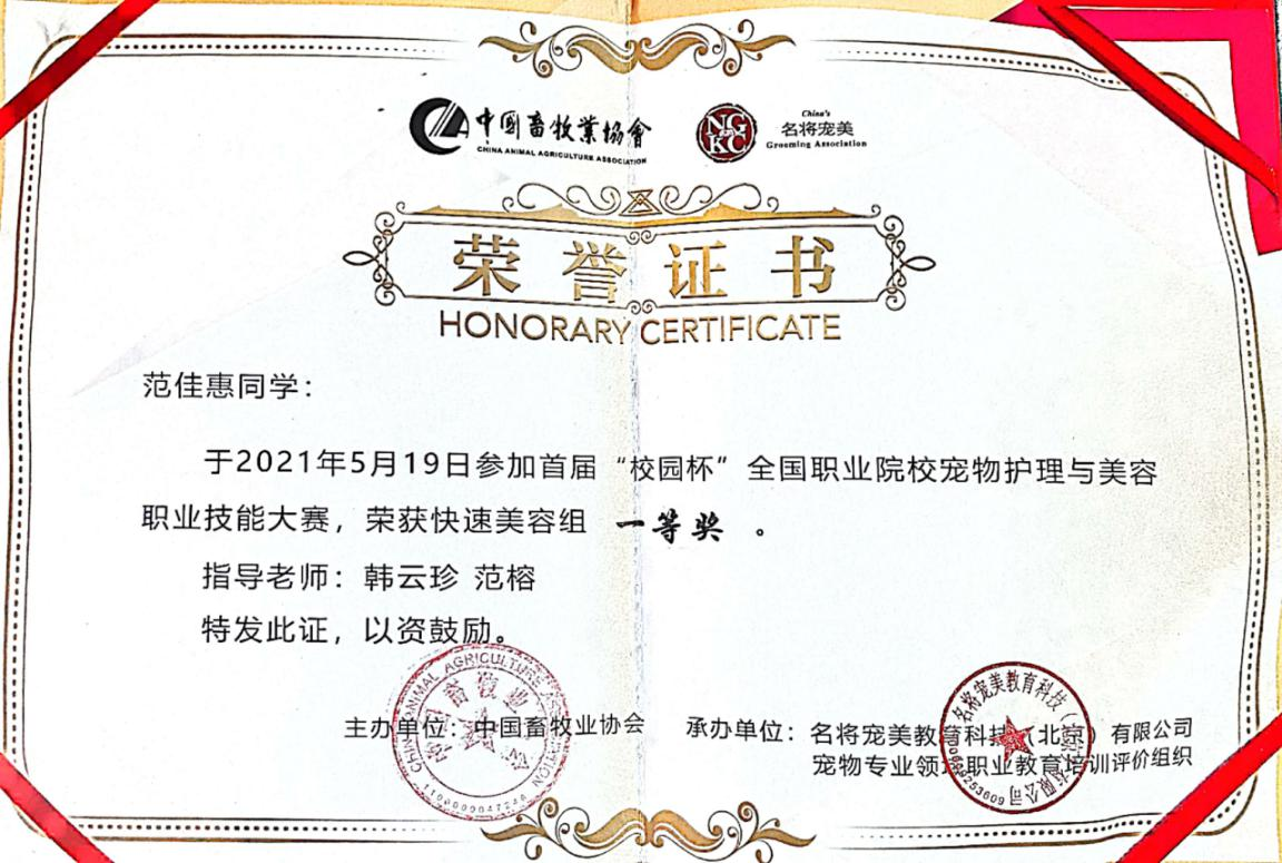 8.指导学生参加“中国宠物美容师大赛”获奖